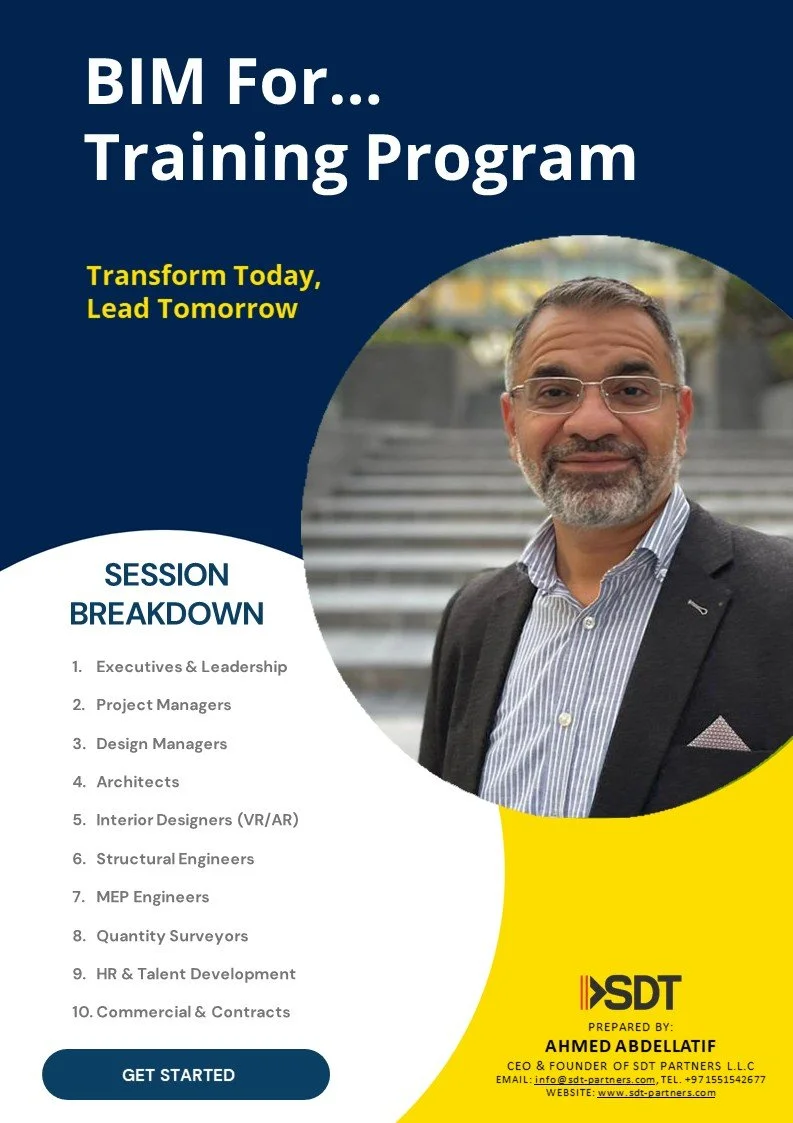 Ahmed Abdellatif brings over 26 years of experience, including 18+ years leading BIM and digital innovation across Egypt, Kuwait, Qatar, the UAE, and Saudi Arabia. I specialize in driving enterprise-wide digital transformation and performance excellence. My expertise spans AI, cloud, AR/VR, and digital twin technologies, with a strong track record in platform selection, governance, and enterprise-level process optimization.